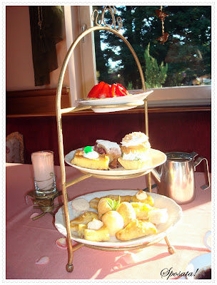 Todos os dias a gente tinha uma torre de delícias no chá da tarde, igualzinha a essa aqui ó: